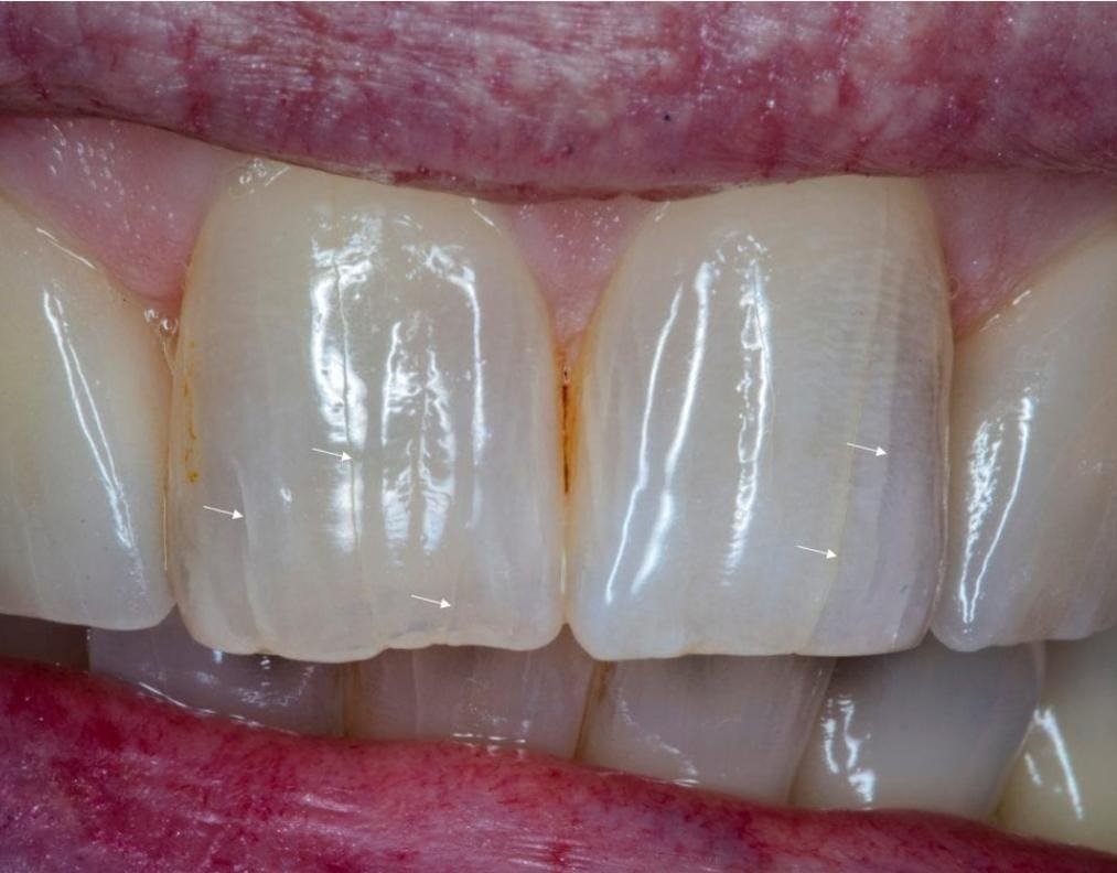 Cosmetic cracks on the enamel—more cosmetic than pathological.
