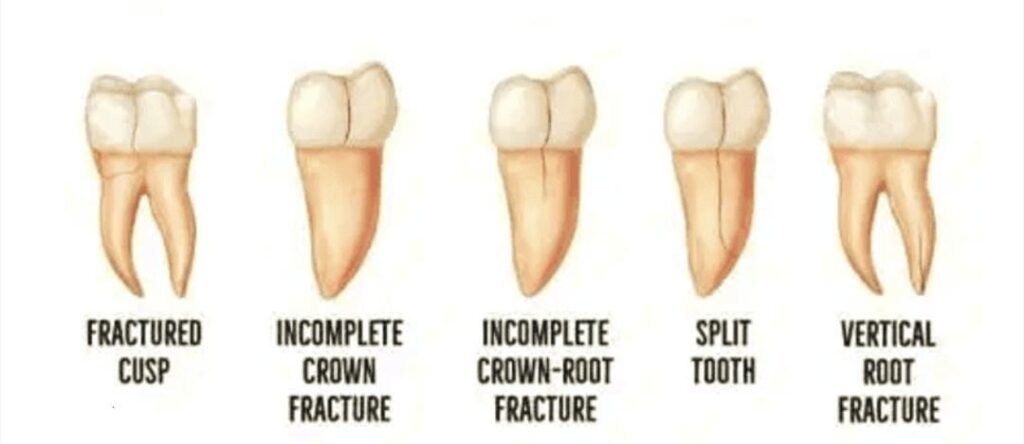 A cracked tooth in half, cut edges, or deep fractures can develop as a result of physical harm in sports, falls, and even road accidents.