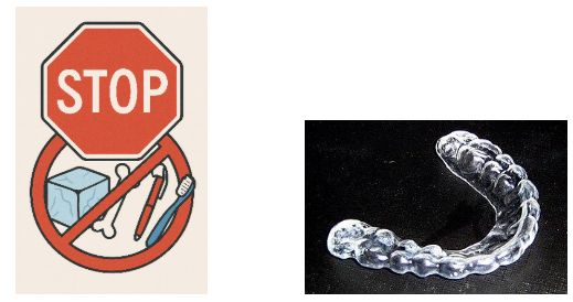 - Avoid chewing on things like ice, hard bones, pens, etc.